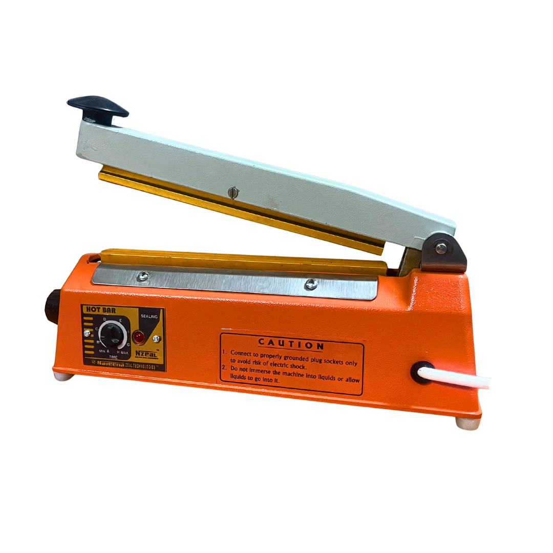 The 200mm Hot Bar Sealing Machine 200 HH is designed for sealing laminated and silver pouches that require continuous heat and strong sealing pressure. It maintains a constant temperature during operation, making it suitable for multi-layer packaging materials.