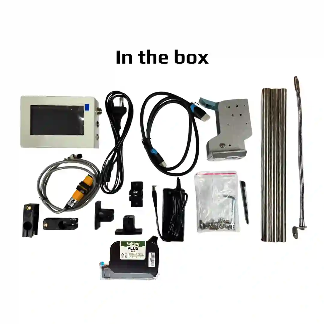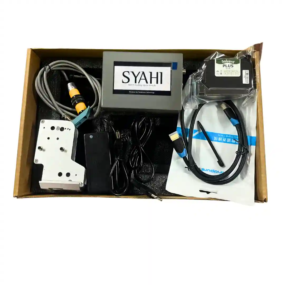With a 12.7 mm print height, the system supports clear marking of text, barcodes, QR codes, and simple graphics. It is suitable for product identification tasks where consistent readability is required. The included Syahi Plus black ink cartridge provides stable marking on both porous and non-porous surfaces.