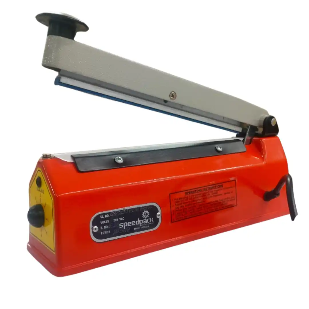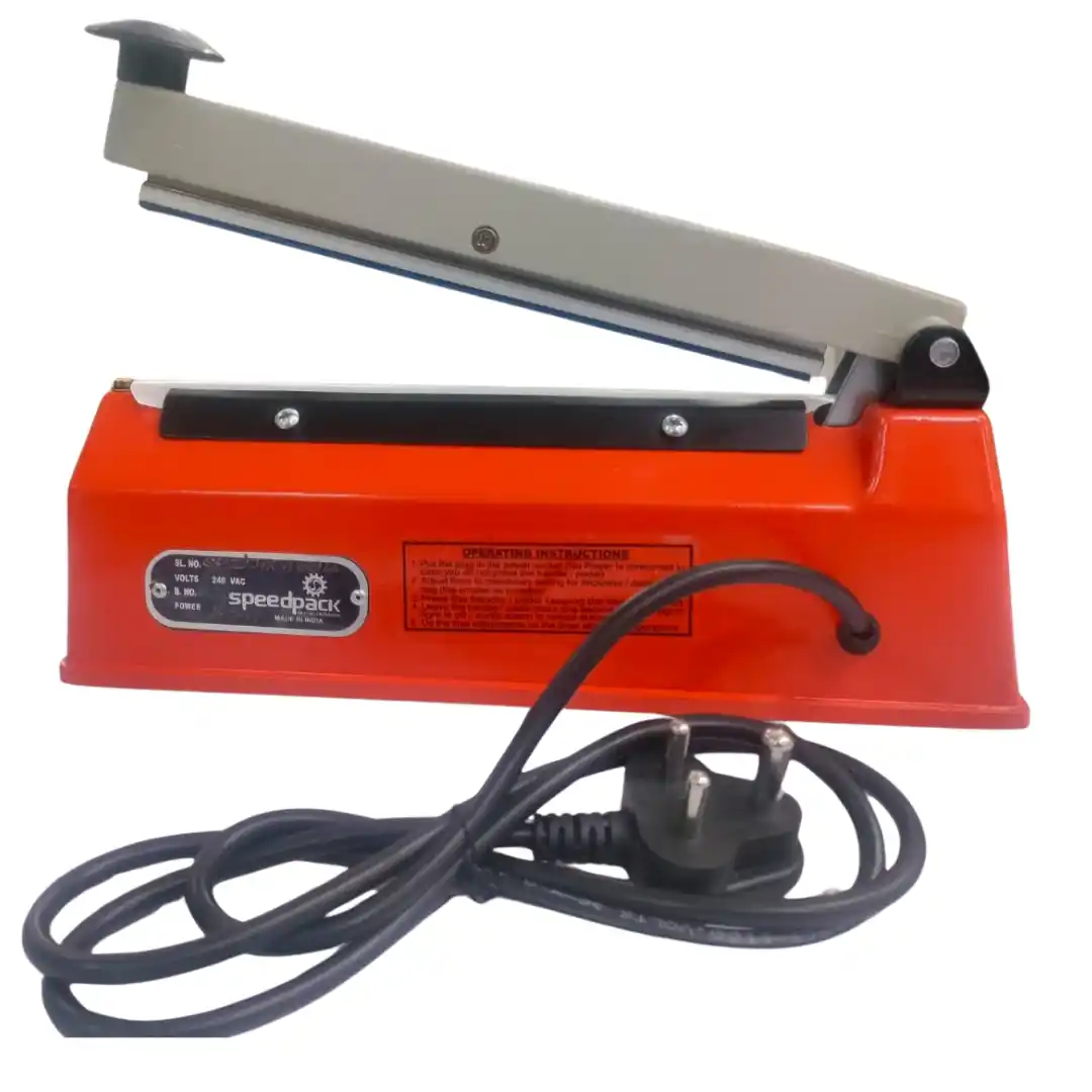 The Made in India 200mm Impulse Heat Sealer Machine SP200 Delta is designed for sealing plastic bags and laminated pouches in packaging operations. It uses impulse heating technology, where heat is generated only when the sealing arm is pressed, helping reduce power consumption.