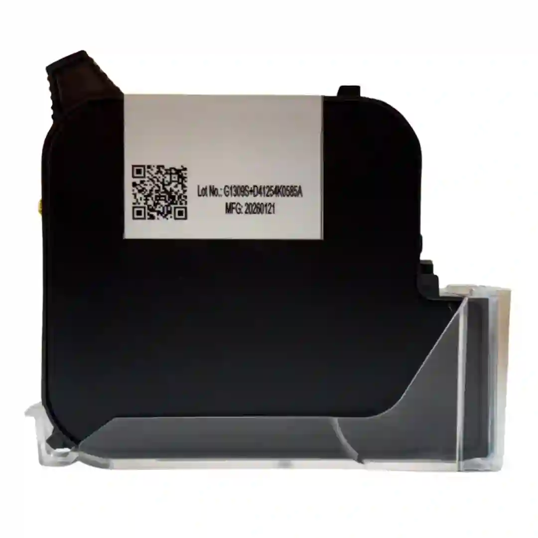 With a 25.4 mm (1 inch) print height, this cartridge is suitable for printing larger text, logos, and high-visibility codes. It supports clear printing of batch numbers, manufacturing dates, expiry dates, barcodes, and QR codes with consistent definition. The ink dries under normal operating conditions, allowing products to move along production lines without smudging or transfer.